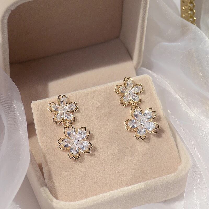 リアル14kゴールドメッキ*ジルコニアストーン桜咲くピアス❤︎